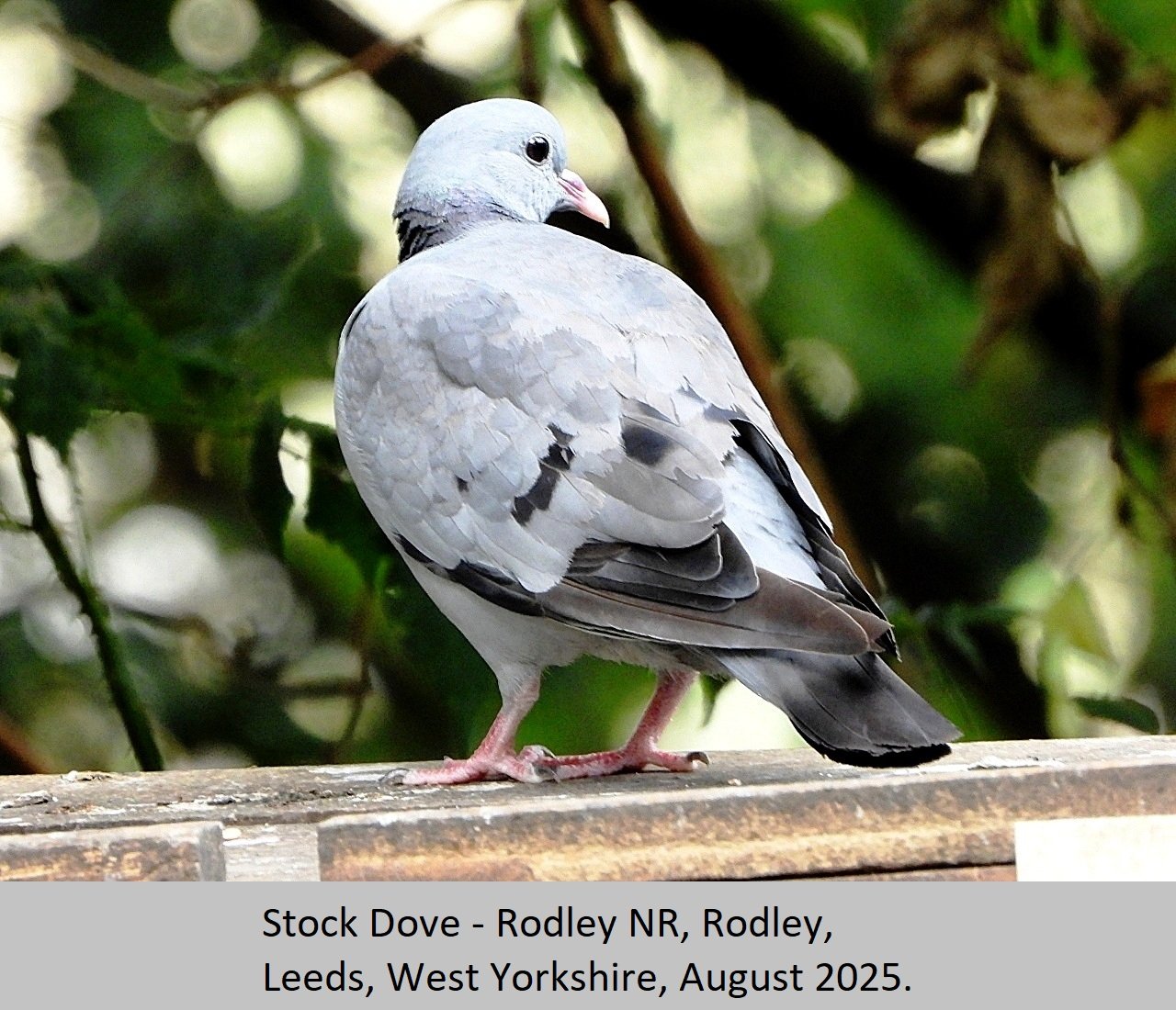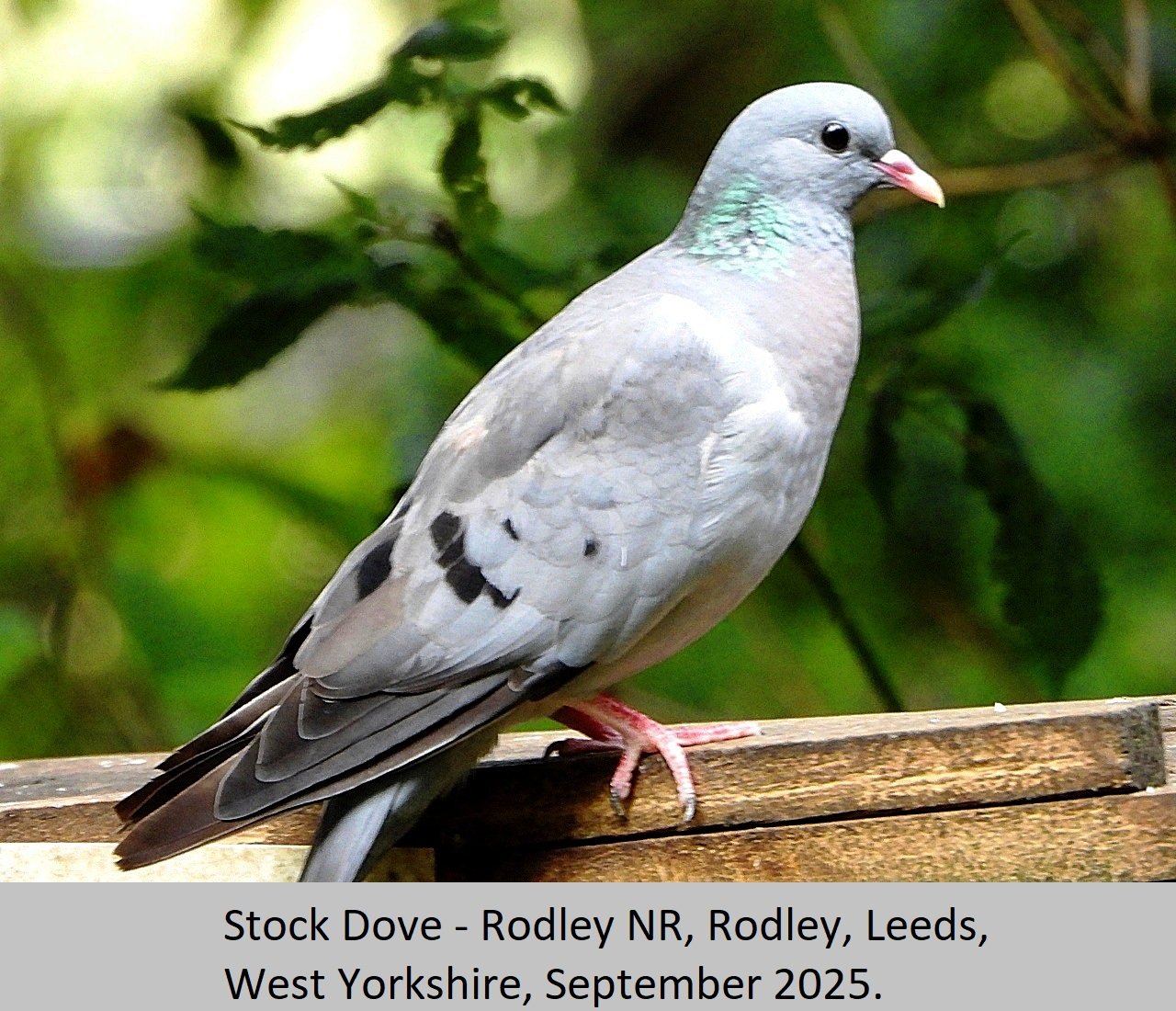 Stock Doves: UK Status: Resident and native to the UK. Habitat: Although nesting in trees, this dove prefers more open, lightly wooded country such as Parkland, Gardens, heaths, moors, hedgerows to name a few. Breeding: Stock Doves start nesting in Late February, and continue on well into late summer. Their nest is a platform of twigs with dead leaves interwoven into them. Nests are placed in holes in trees, and sometimes in stone buildings. Two white glossy eggs are laid, eggs take sixteen to eighteen days to hatch. Both parents take turns incubating the eggs, and their offspring take about four weeks to fledge. There can be up to four broods each year, the fourth in favourable years is often fledging in late September. Comment: Very similar in appearance to the Rock Dove, only having a single dark bar on the wing casing, whereas the Rock Dove has two dark bars. Stock Doves do not have the pale rump of the Rock Dove, but do have in irridescant green band on the back of the neck. Once a common bird but is becoming scarcer, and this is of some concern. It is to be found in England, Wales, east Ireland, the south of Scotland, and eastern Scottish coast. The highest concentrations of this dove are in the English midlands.