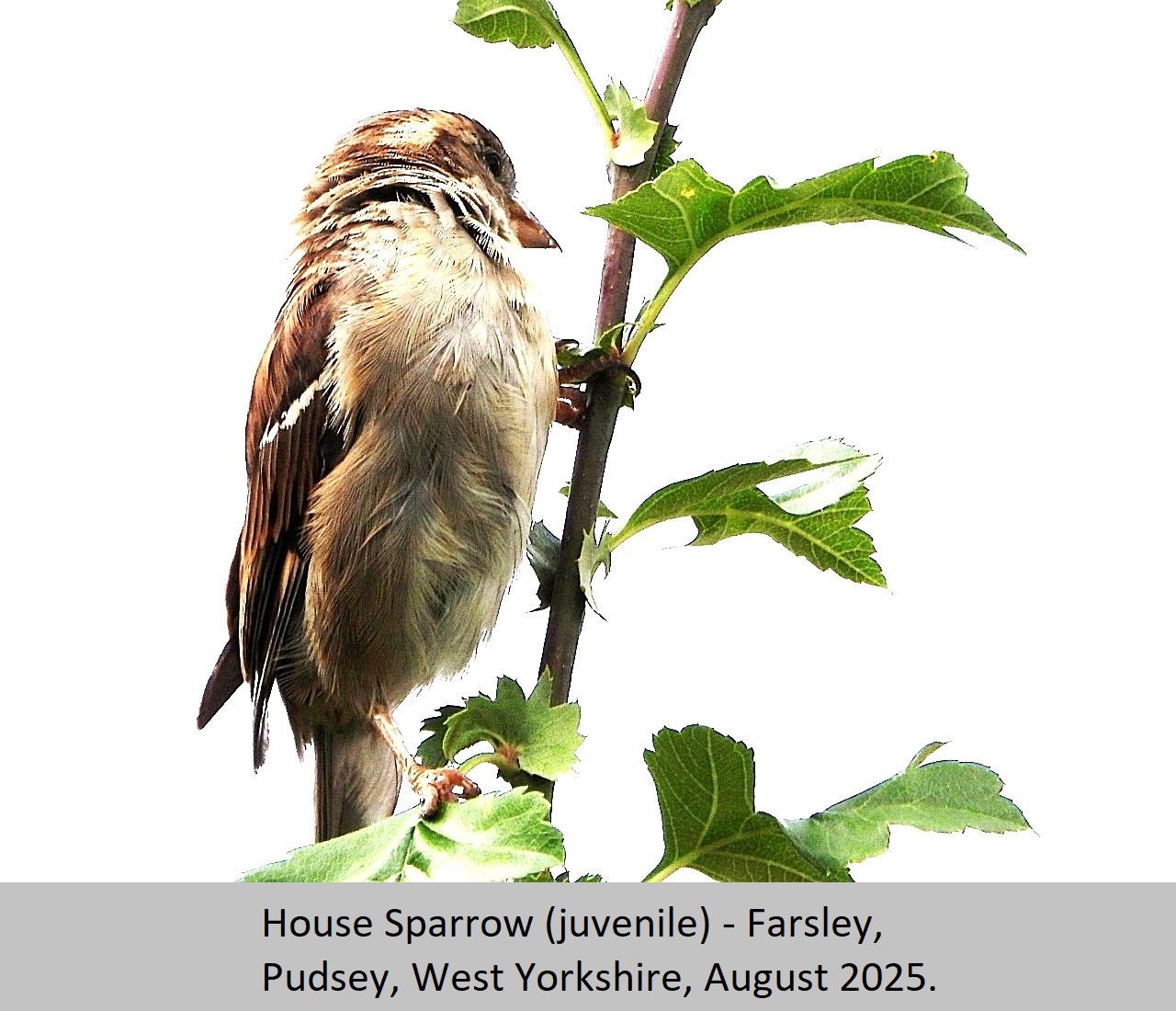 House Sparrow: UK Status: Native and resident. Habitat: Having once been a common bird in all of the British Isles, this bird since 1977 has declined in numbers by as much as 70%. This decline is mainly due to modern building methods, and home improvement. House Sparrows are found in many habitat types, but in the UK are mainly urban and suburban. There are probably people in a few parts of the UK, who have never seen one. Breeding: Males and females are sexually dimorphic, the male has a blotchy black bib under his chin, where as the female lacks the bib. They nest under the eaves of older buildings, especially suburban homes. They will occasionally nest on well sheltered rock ledges. Nests are basic and flimsy, made of dried grass, straw and a few feathers. They lay about four to six, off white eggs, blotched with dark grey brown markings. There are usually at least two broods a year, sometimes more. Comment: This bird is to be found throughout the world, especially around older buildings. In the British Isles it is still reasonably common where older buildings exist. Widely spread, though now more localised, throughout the British Isles. The most obvious difference between the Eurasian House Sparrow, and the Eurasian Tree Sparrow is the colour of the crown. House Sparrows have a grey crown, whereas Tree Sparrows are chestnut brown on the crown of their heads.