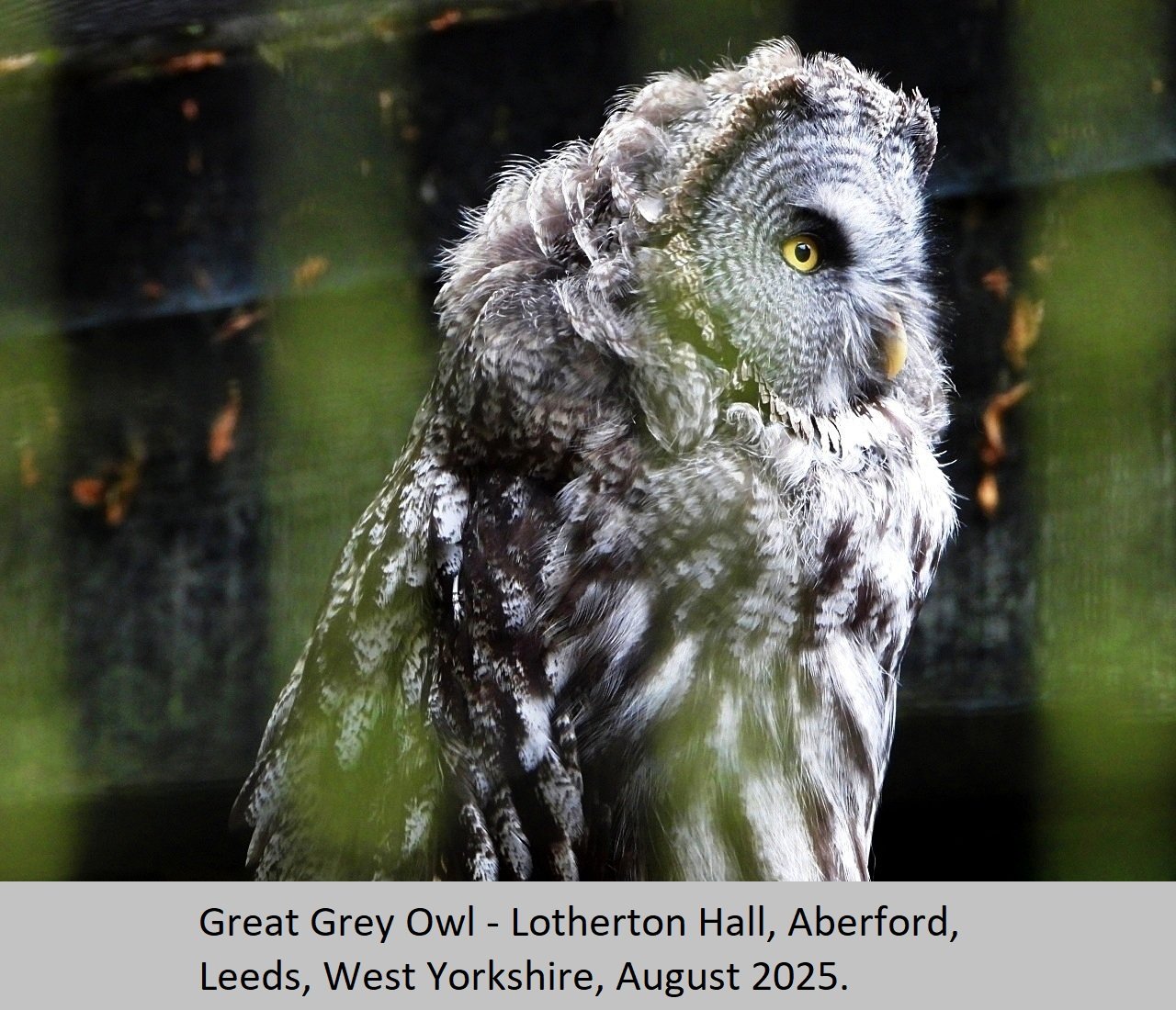 Great Grey Owl: UK Status: None resident, although this dapper looking owl inhabits places in all of the Northern hemisphere, the nearest to the UK it's found is Scandinavia in Northern Europe. Habitat: This owl tends to inhabit dense coniferous woods, whilst further south it appears to prefer dense Oak woodland, or mixed Oak woods.. Breeding: This bird does not build it's own nest, but takes over the old nests of other species such as crows and raptors. They will also nest on artificial platforms that are erected for them. Nesting and egg laying takes between March until May, depending on the local climate. Females lay about four large white coloured eggs, which hatch after about a month. When the chicks can fly the mother bird leaves them, and the male parent continues to raise into the autumn. By this time they have usually become proficient hunters. Comment: This bird was first discovered in Canada, but its now known that it inhabits many parts of the Northern Hemisphere, hot, or cold, It appears to be a very adaptable species.