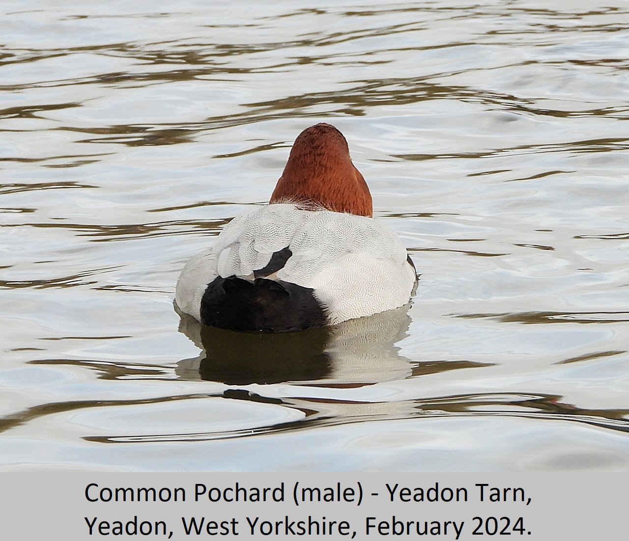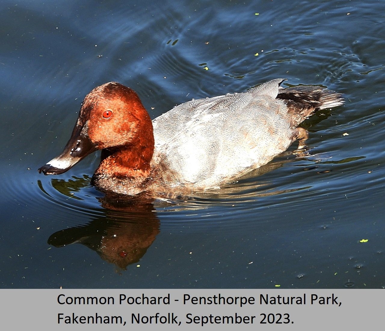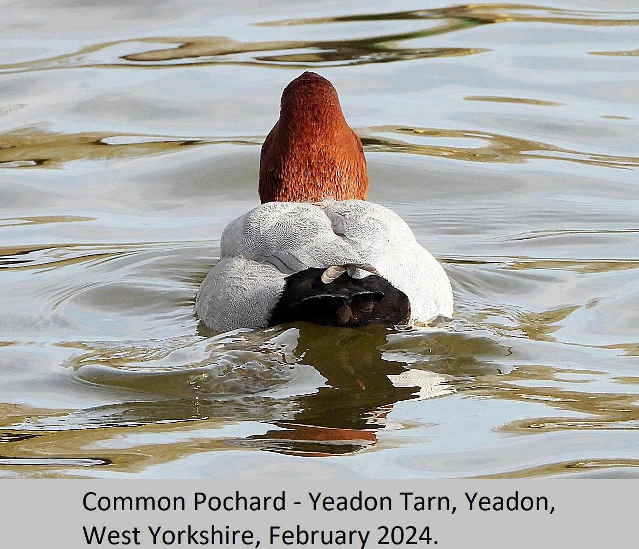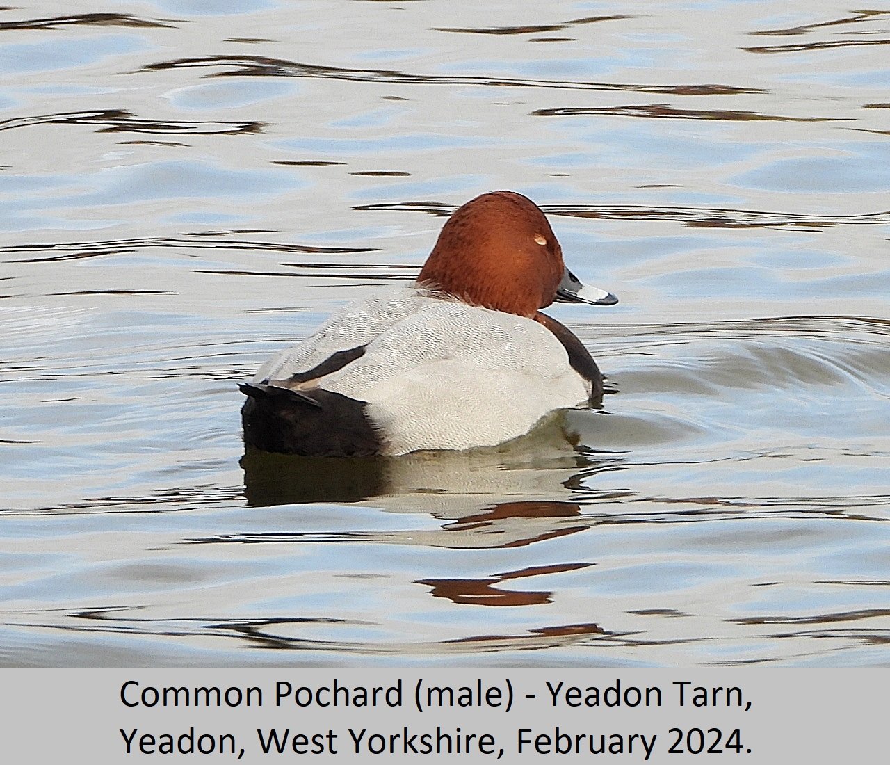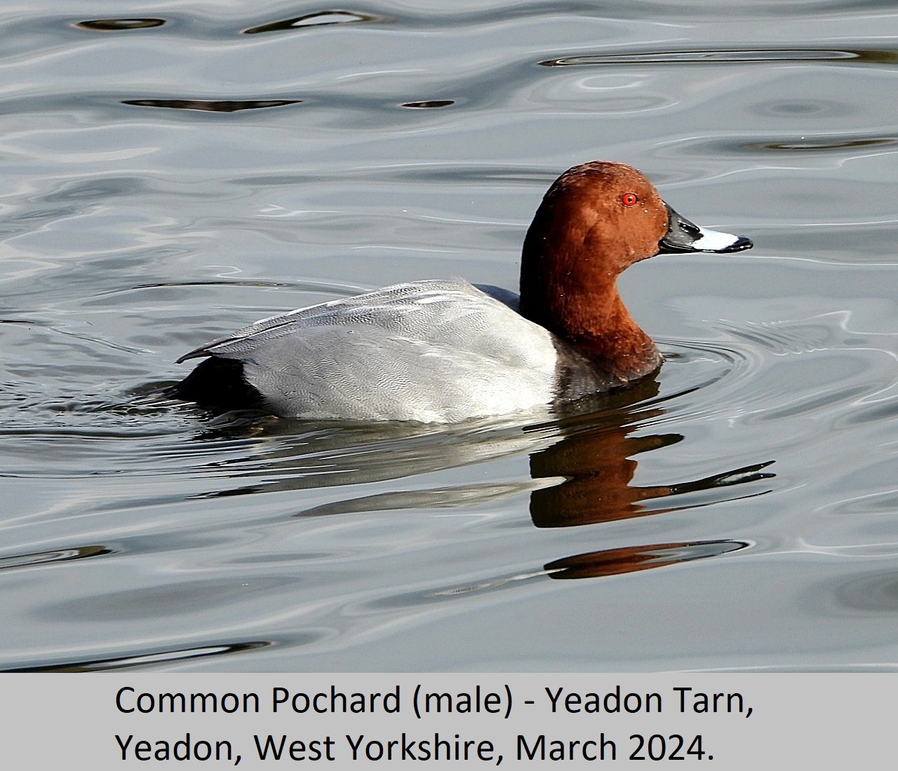 Pochard Duck: UK Status: Resident, the native population of about fifteen hundred birds swells greatly in the winter. Species coming here from the north to overwinter, numbers around twenty nine thousand mating pairs. Habitat: This duck is sexually dimorphic, the males are easily recognized, the females can be easily confused with females of other species. They like a wide range of habitats including mainly lowland rivers, canals, large pools and lakes, river estuaries and even inshore salt water. Breeding: Nests are situated on the ground close to water, sometimes on small islands, or even in shrubbery and reed beds suspended above the water. Nests are made of grasses and other vegetation, lined with downy breast feathers. There are eight to ten greyish green eggs in a clutch, and there is one, or sometimes two broods in a year. Comment: Common in winter throughout the UK, but more discriminating in the breeding season. Few area's in the UK are used for breeding, and are mainly on, or near the east coast.