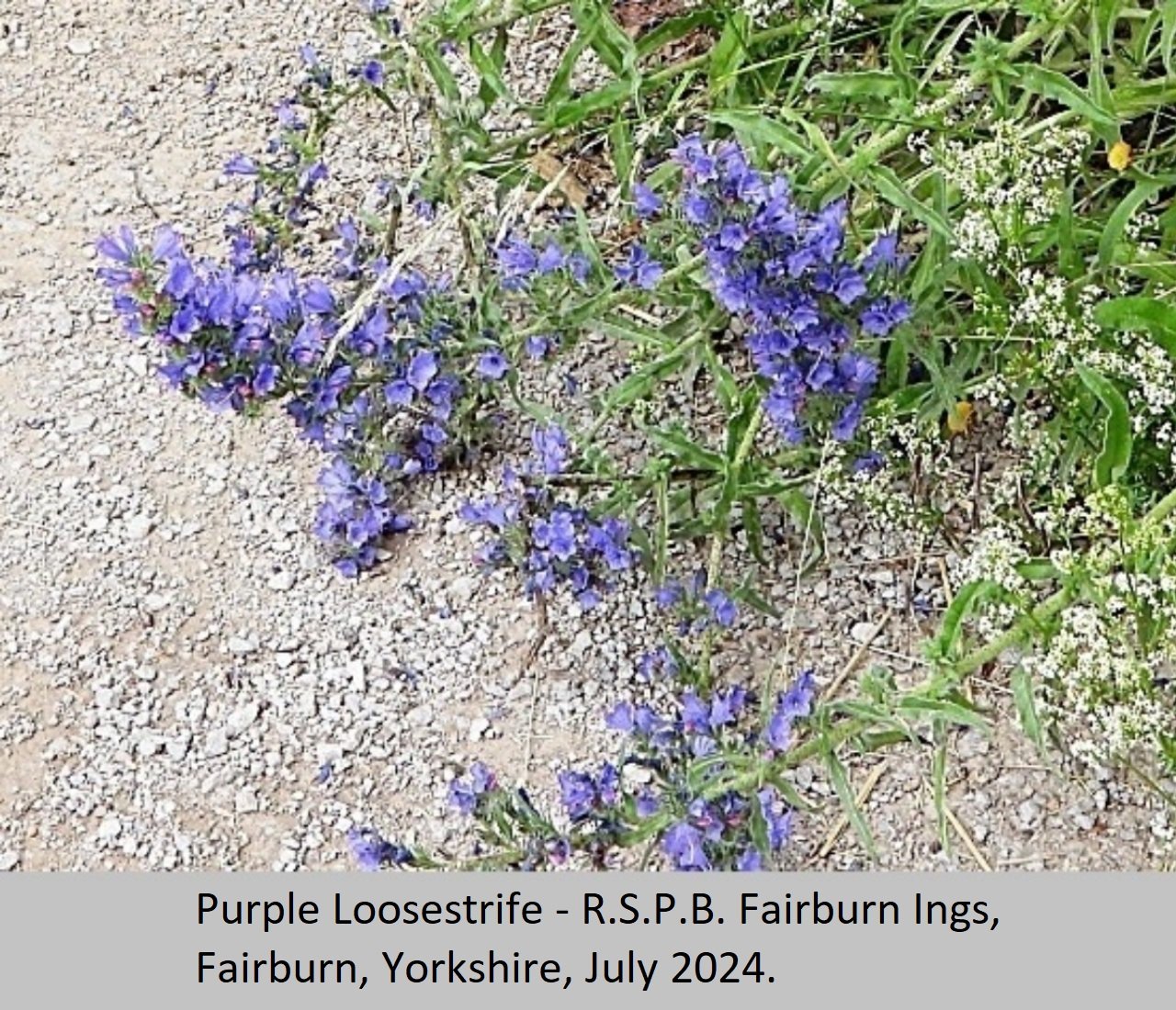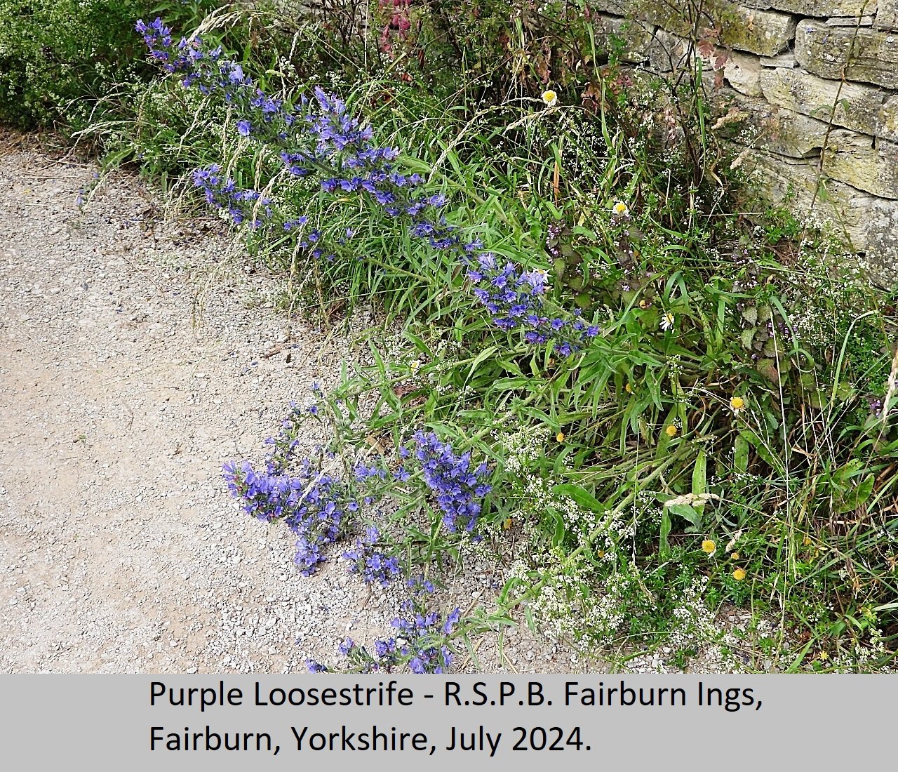 Purple Loosestrife: UK Status: Native and Resident. Flowering Period: From June through into August. Appx Height: From about three and a half feet, and up to six and a half feet tall. Habitat: This plant likes being in the open in damp to wet soils, though can sometimes be found on dryer soils. Comment: This plant has flowers that are generally pink to purplish in colour. However white and bluish coloured forms although scarcer can be seen from time, to time. It has three distinct flowering type stalks, which can confuse identification.
